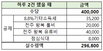 서울에서 전주까지 컨설팅 1건 수당 20만원에 가면 대략 다음과 같은 계산이 나옵니다.